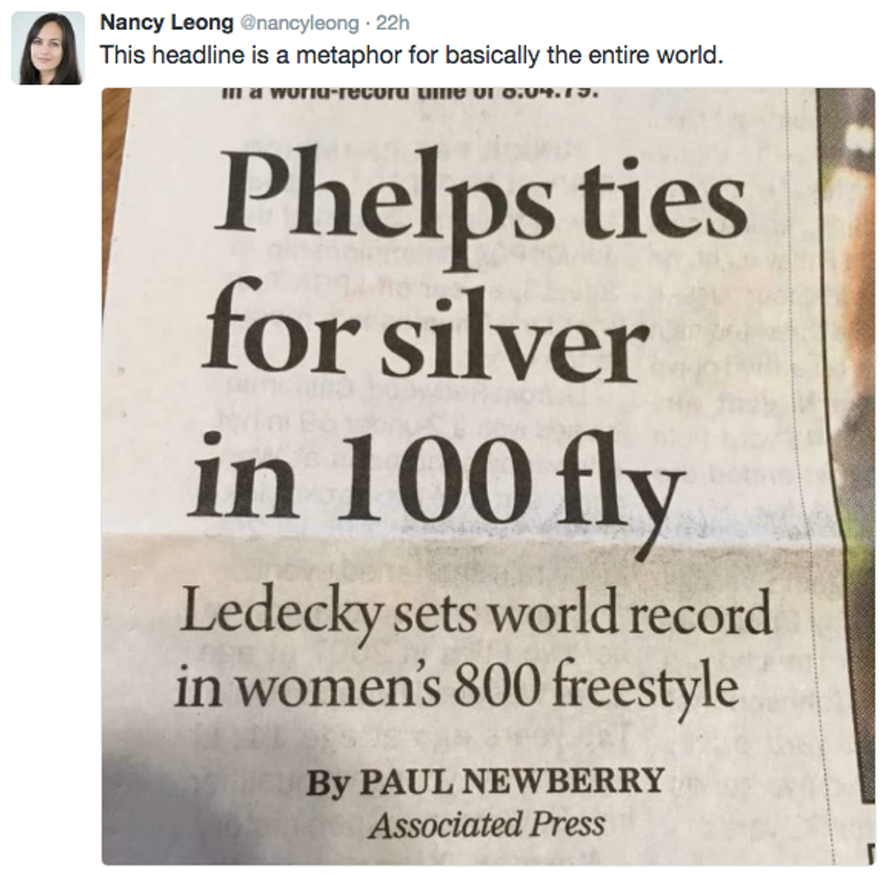1. The time the Chicago Tribute called a three time Olympian the "Wife of a Bears' lineman wins a bronze medal today in Rio Olympics."