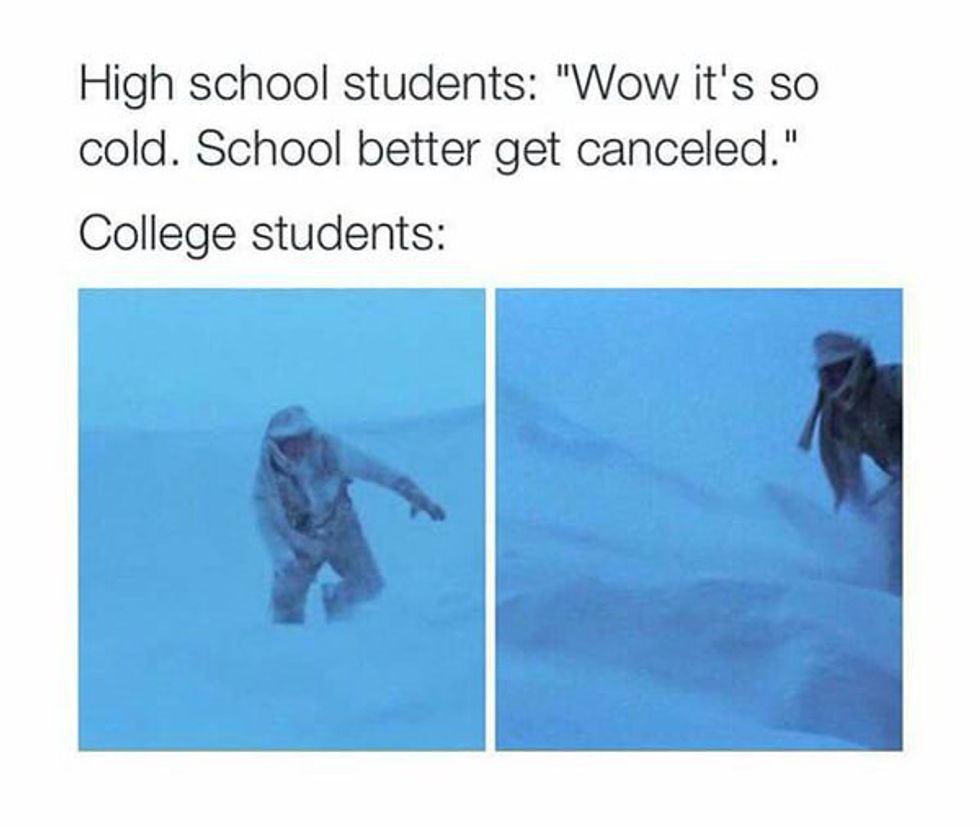 It's like a never-ending pile of exams, papers, and quizzes. Do these teachers know we need time to eat and sleep?This winter weather has made walking to class miserable.
