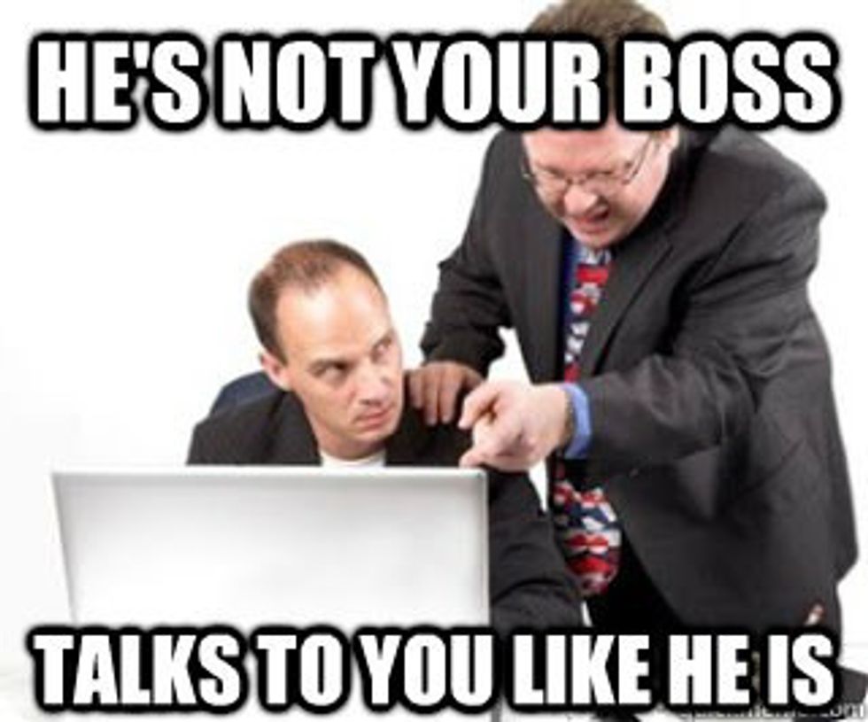 You. Are. Not. The. Manager. Do not walk around the place thinking you're all high and mighty and above us, because you're not. To me, this is the worst coworker of all. They'll stand and bark orders and it's usually because they've been there several years. Guess what? It doesn't matter whether you've been at a job for 5 years or 5 weeks, you're not that special.