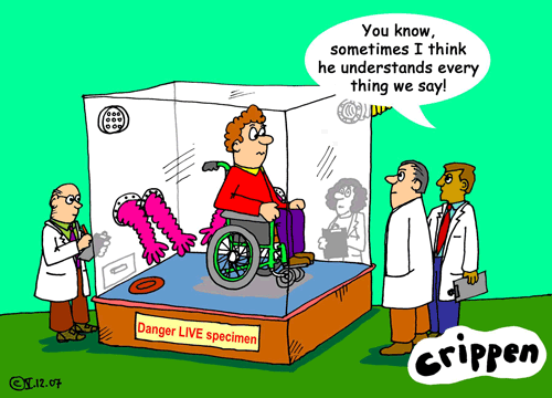 I am not mentally incapable just because I am in a chair, and I have not been "touched by Jesus" every time I walk. Similarly, I do not appreciate it when you push the chair without asking me first. I can hear and understand when you make fun of me, and I am SO sick of your pity.