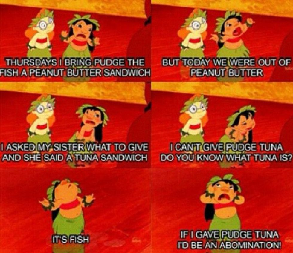 One major part of the movie is Lilo's love for Elvis, which she passes on to Stitch. When she is training him, she uses Elvis as inspiration and an aide to accomplish her task. Sometimes you just need music and some dance moves to accomplish what you need to do. And let's not forget during this part of the movie, Lilo's sister Nani is trying to find a new job. We all know the struggle of job hunting in college.