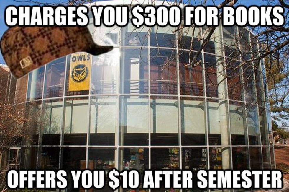 I love you Kennesaw State, I truly do, but there is no reason for me to spend well over half a thousand dollars on textbooks. Seriously; one time I did a couple calculations and found that the price of my books was nearly one-fourth of my tuition. That’s ludicrous. What’s even more absurd is that many students still go to the book store to acquire their materials. Try other outlets.