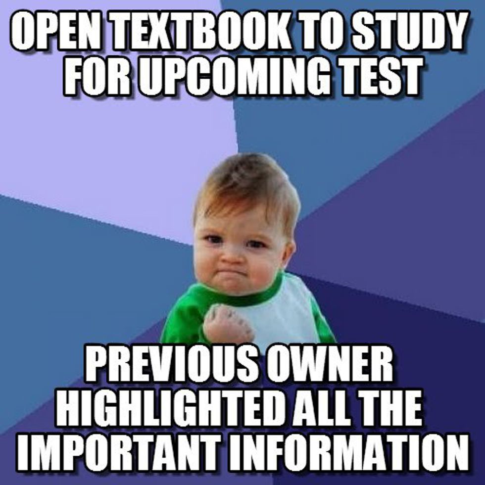 Textbooks can go two ways—either the book is a life source, the bible for of the course, and without the bonded pages, you will fail… miserably. Or you could rarely open it, only using it for the sake of a paper weight or using it to bare your pen on paper when taking notes in class.