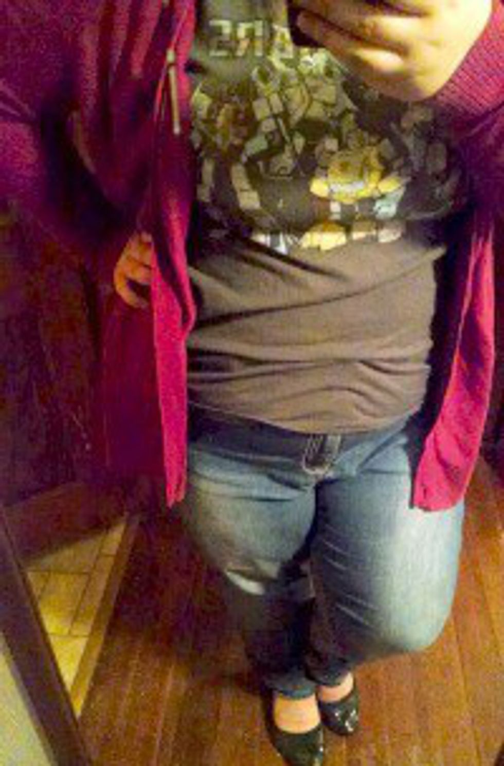 Pair your favorite nerd shirt with a cardigan of your choice, skinny jeans, and a pair of ballet flats or riding boots and you are good to go!