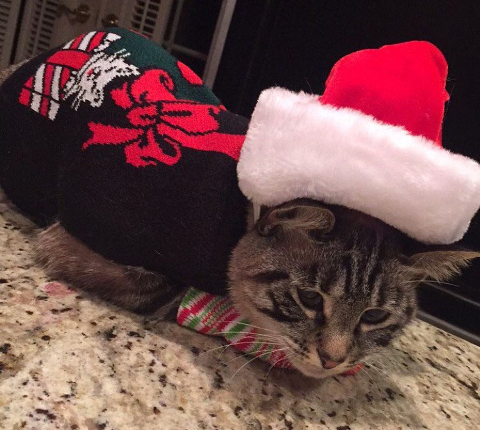 Last, but definitely not least, perhaps every college kid's favorite thing about being home is being able to snuggle our pets (and maybe force them into silly outfits, but can you blame me? Look how cute she is!).