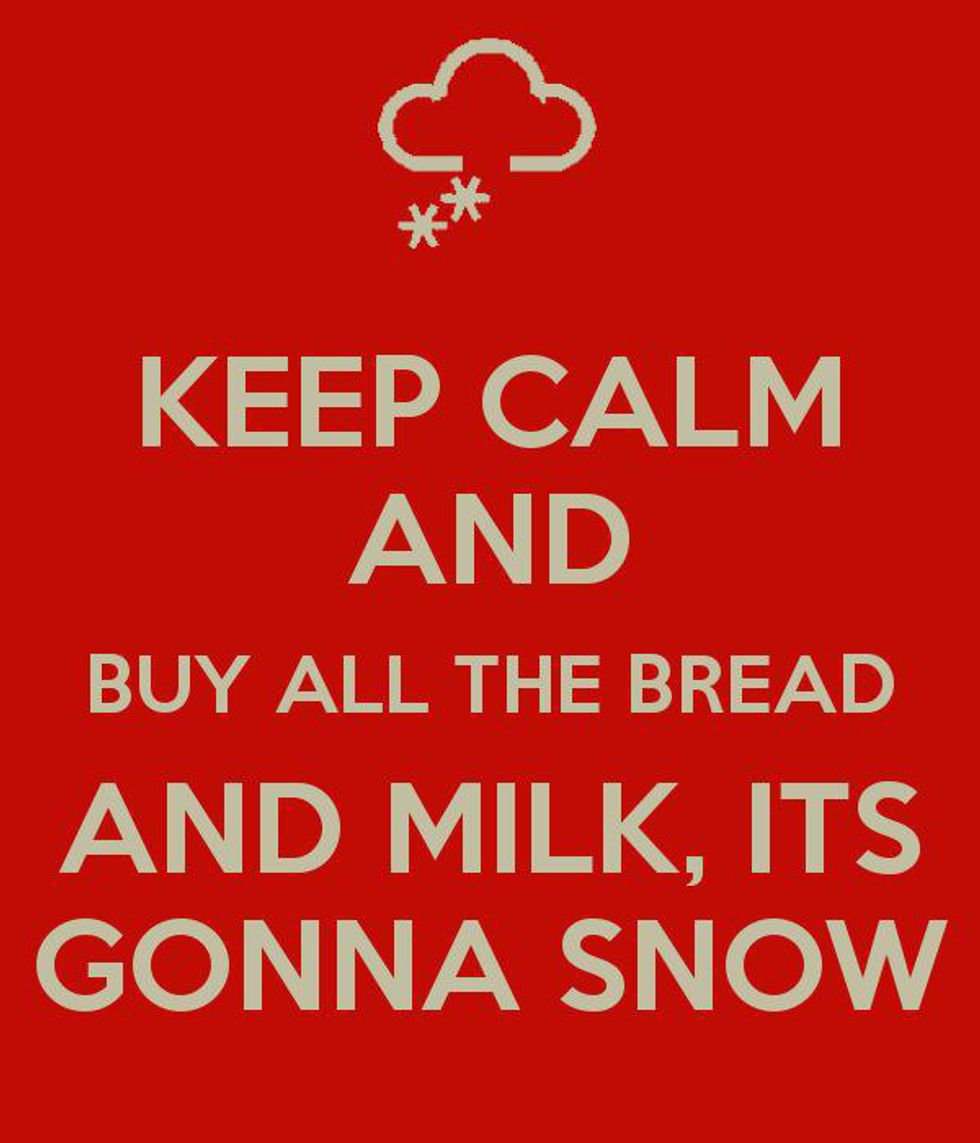 Now when it snows, we have canned food to get us through the snow but what about the staples of southern food aka bread and milk? You can’t have biscuits without milk, sandwiches without bread, or literally anything with milk in it because you are snowed in and can’t get into town to the store. So this is why we flip out about getting bread and milk. We need the staples and with most small towns being far away from a larger town, we need to get the staples when we can before everyone else gets the food before us.