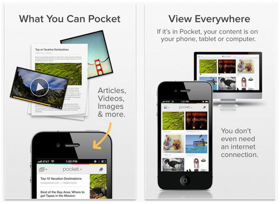 How many times are you in class or at work, and a friend sends you a video or you want to read an article? The app Pocket allows you save whatever it is you want to view for later. Get rid of all of those tabs in your Safari and just check it all out in your Pocket. Convenient, I know.