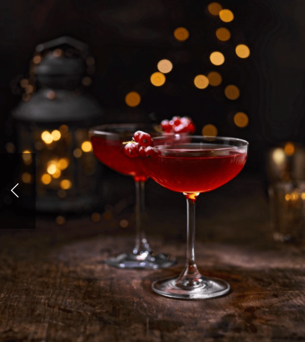 This drink is the perfect touch when taking your "I'm at a holiday party" Instagram photo. Not only is the color super cute, but when garnished off with a twig of cranberries, this drink is sure to steal the show.