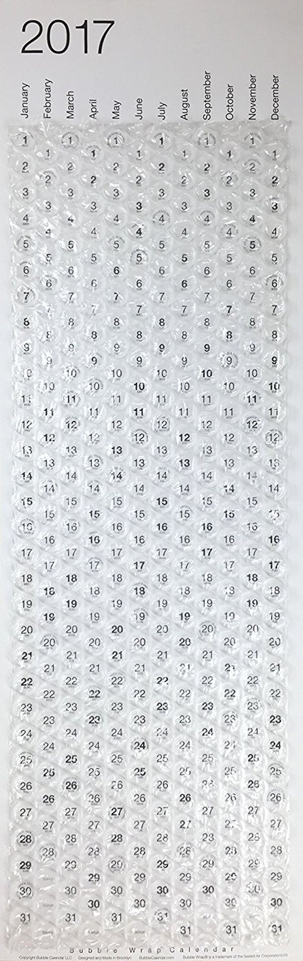 Raving Review:"Have you ever woken up and immediately wanted to destroy something? Of course you have. Nary a day goes by that causing a bit of destruction wouldn't make the rest of the day so much easier to handle. I've woken up and smashed alarm clocks with hammers. It got expensive even replacing the cheapest alarm clocks daily. I've broken a few eggs (and enjoyed the ensuing omelettes that came with it). I even crashed my car into some medians on the morning commute, but after three times, my insurance company told me they frown upon such behaviors. Then came this. Every morning I wake up and hold in my rage long enough to amble over to the 2014 bubble calendar and start my day off my popping, and utterly destroying, the current day's representative bubble. It has done wonders for my psyche and I no longer have the urge to ruin other household goods or roadside attractions." -- SW3K.