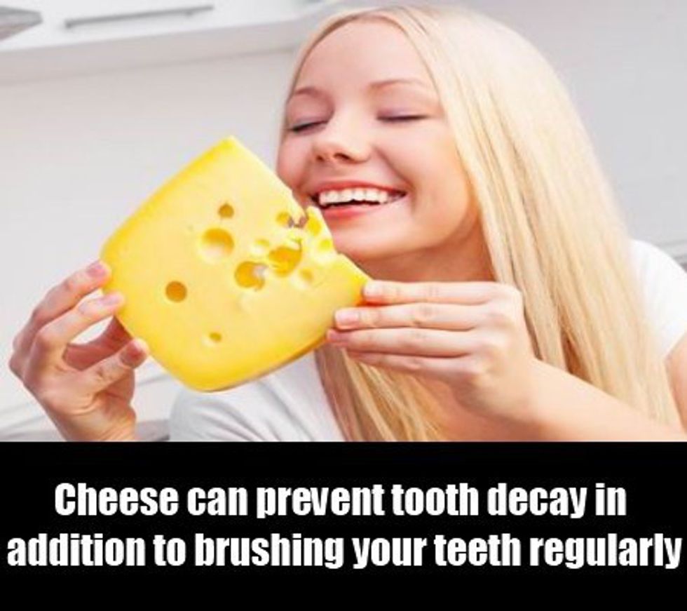 Swiss, cheddar and mozzarella promote the production of saliva which helps eliminate acids and unnecessary sugars before digestion. These acids and sugars are part of the aggressors notorious for breaking down enamel and decaying your teeth.
