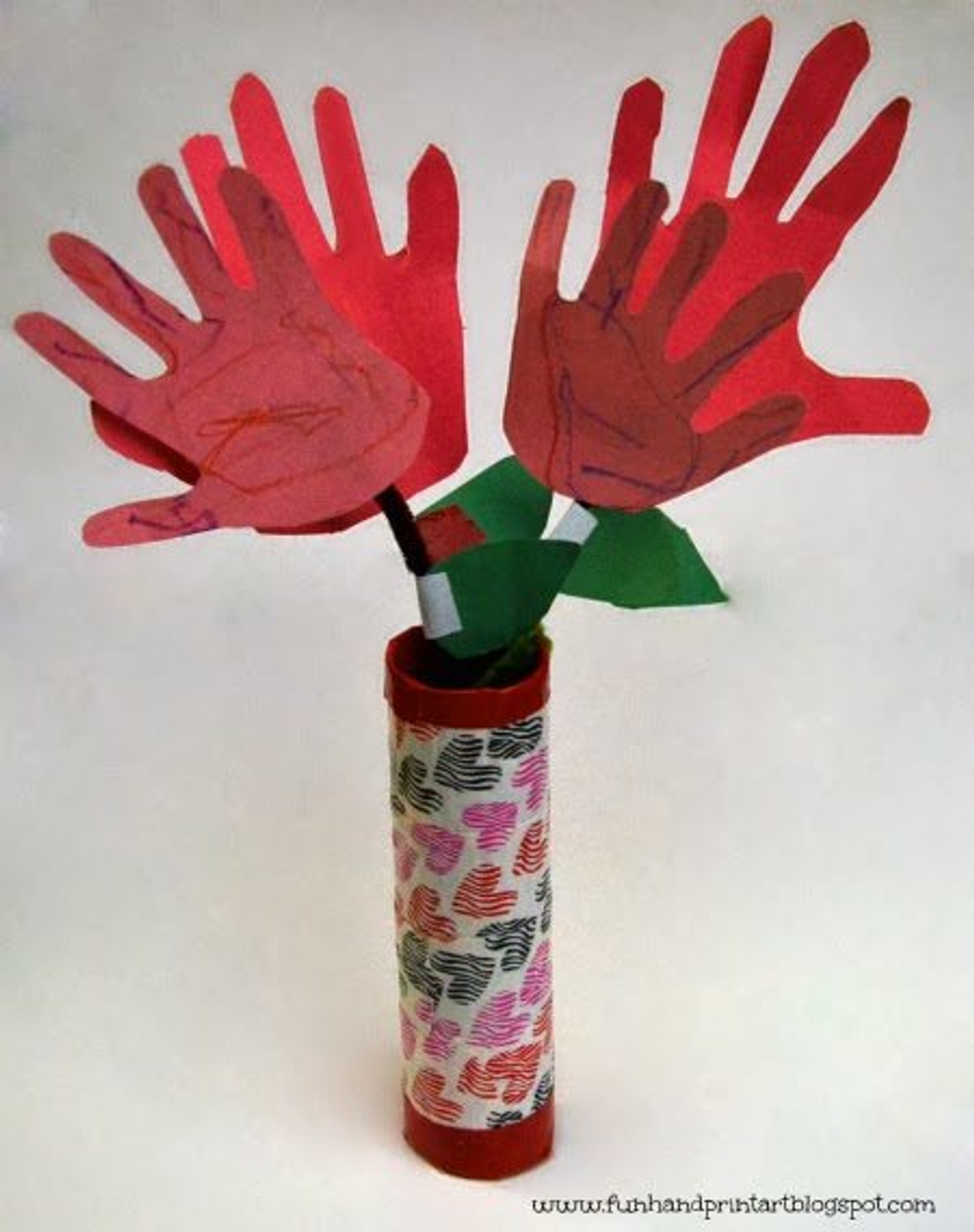 This is always my favorite craft to do, it is so fun to see everyone's different hand shapes and sizes. You can do this craft two ways. You can either use finger paint (my favorite) or you can cut the hand shapes out using construction paper. Which ever your preference theses types of gifts always make it to the refrigerator for all to see.