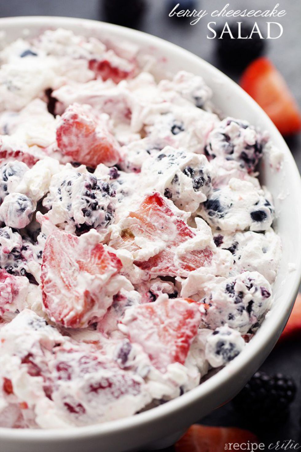 Some people may prefer a simple fruit salad when eating their fruit. It’s simple and not as messy, and can be eaten with a fork! This very berry cheesecake salad from The Recipe Critic looks too good to resist, and it is easy to substitute your favorite berries.