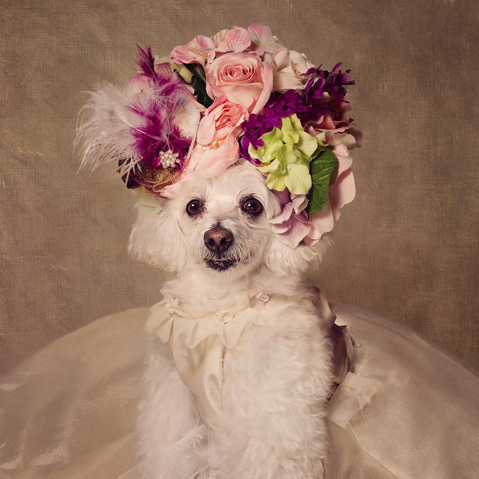 Again, we have here a dog that looks vaguely terrified of her own hat. She's got that summertime sadness for sure.