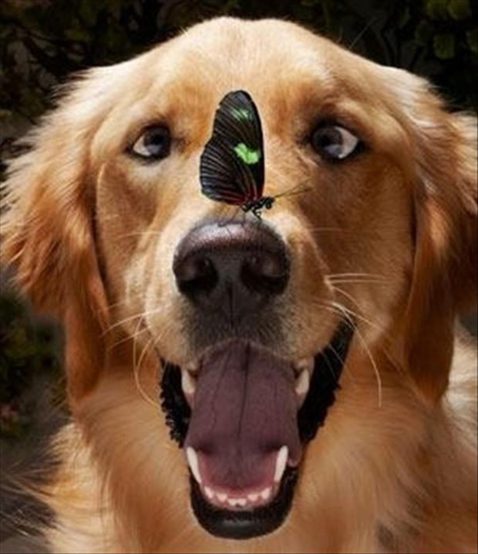 Have you EVER seen a more fabulous display of nature? I'll answer that question for you; absolutely you have not. This is it, this is what life is all about. This dog is hanging out with a butterfly and you're sitting on your couch with your jeans unbuttoned eating Ben & Jerry's.