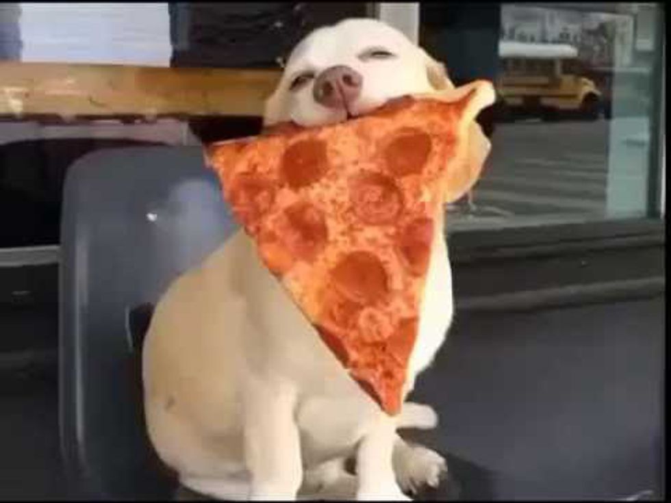 Let's face it, you're about to microwave some cardboard meal before class and you'll probably daydream about pizza the entire time. This lucky pup's day is already exponentially better than yours and you can see it in its adorable face. Bone appetit, amiright?