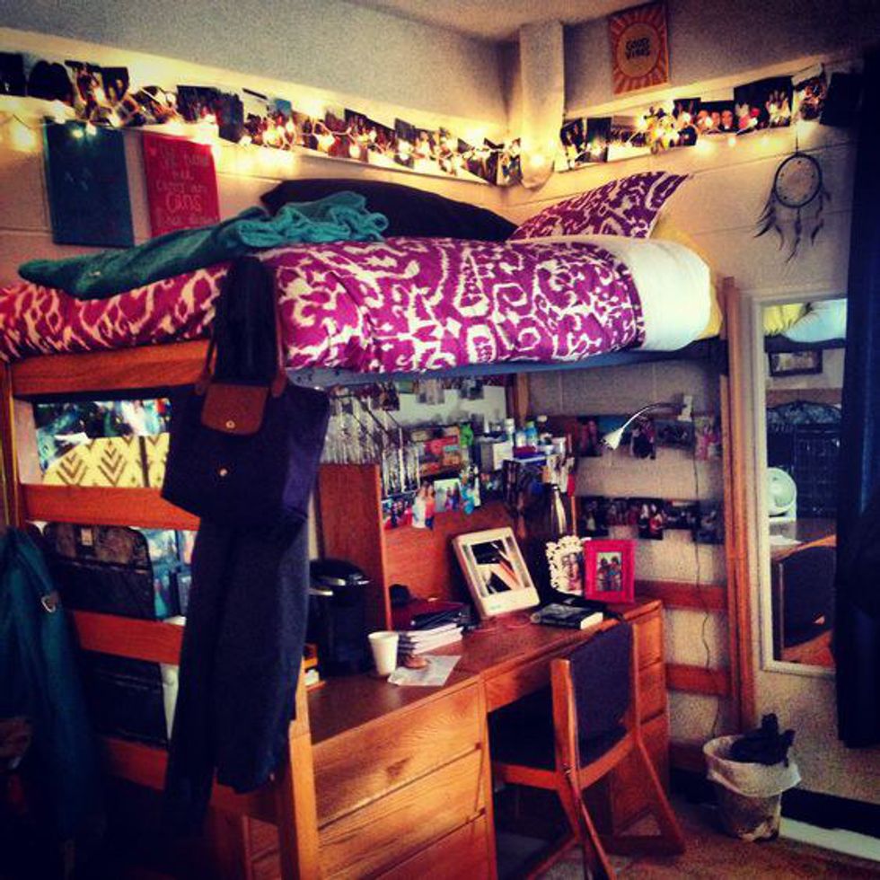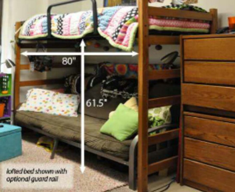 If you can loft your bed, for the love of God, do it! It opens up so much more space in your room for your desk, dresser, chairs, or even a futon!