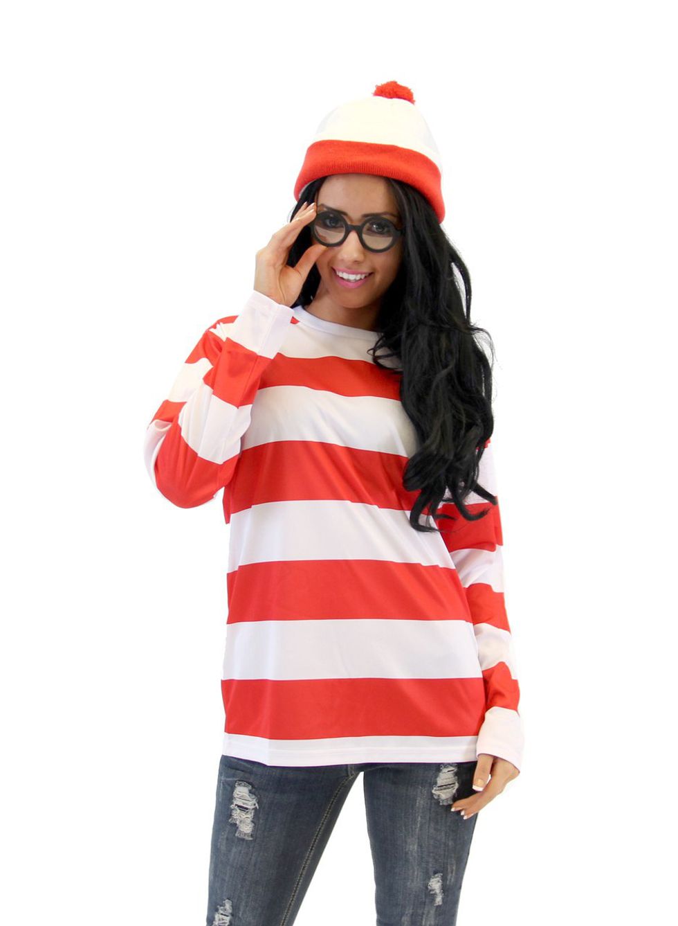 Dress as our favorite and seemingly difficult-to-spot guy with a few thrift shop and even Dollar Tree runs. Bonus points if you take a funny picture in the middle of an unsuspecting crowd. Supplies: red and white striped shirt, red and white ski cap, jeans, glasses.