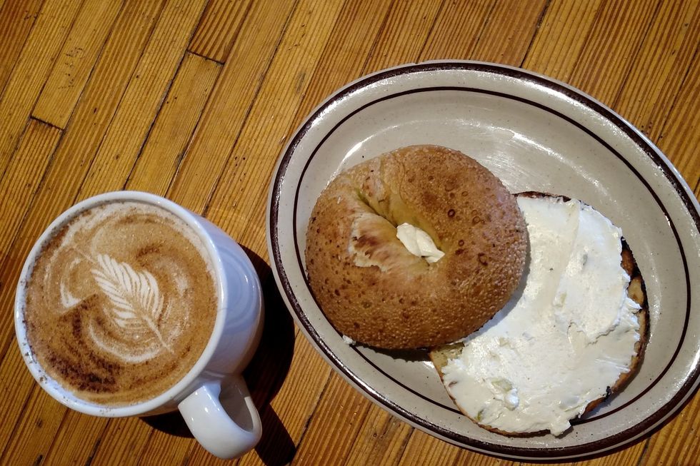 Instructions: I know, cream cheese and avocado? Crazy. But just try it. To make, toast your bagel, and slice up the avocado into thin pieces. Then spread on cream cheese, and add your avocado slices. I like to leave the bagel open-faced like toast.