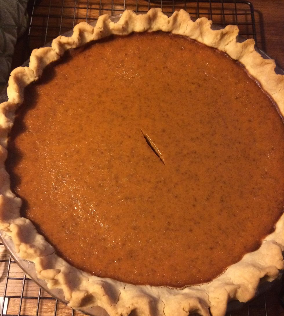 Am I the only one who wants pumpkin pie when it's not Fall? This pumpkin pie is made using the classic Libby's pumpkin pie filling recipe on the side of the can, but the crust is something special. Instead of using butter or lard, rolling out the dough, and trying to transfer the dough to the pan without it breaking, this dough is made with canola oil and is pressed into the pie plate just like Playdough.