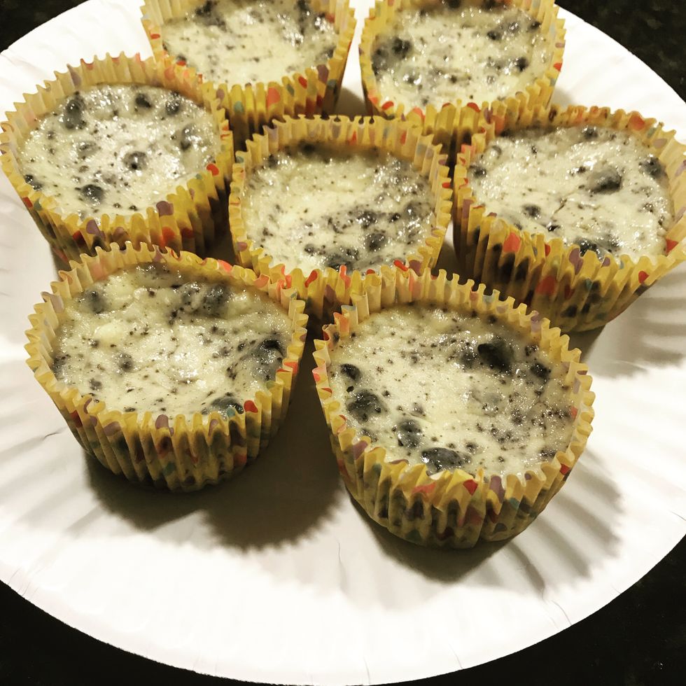 I found these mini Oreo cheesecakes from a Pinterest recipe. An entire Oreo cookie serves as the crust at the bottom of muffin tin, with the cookie crumb cream cheese filling on top. The hardest part of this recipe is waiting for these little cheesecakes to cool in the fridge when all you want to do is eat one.
