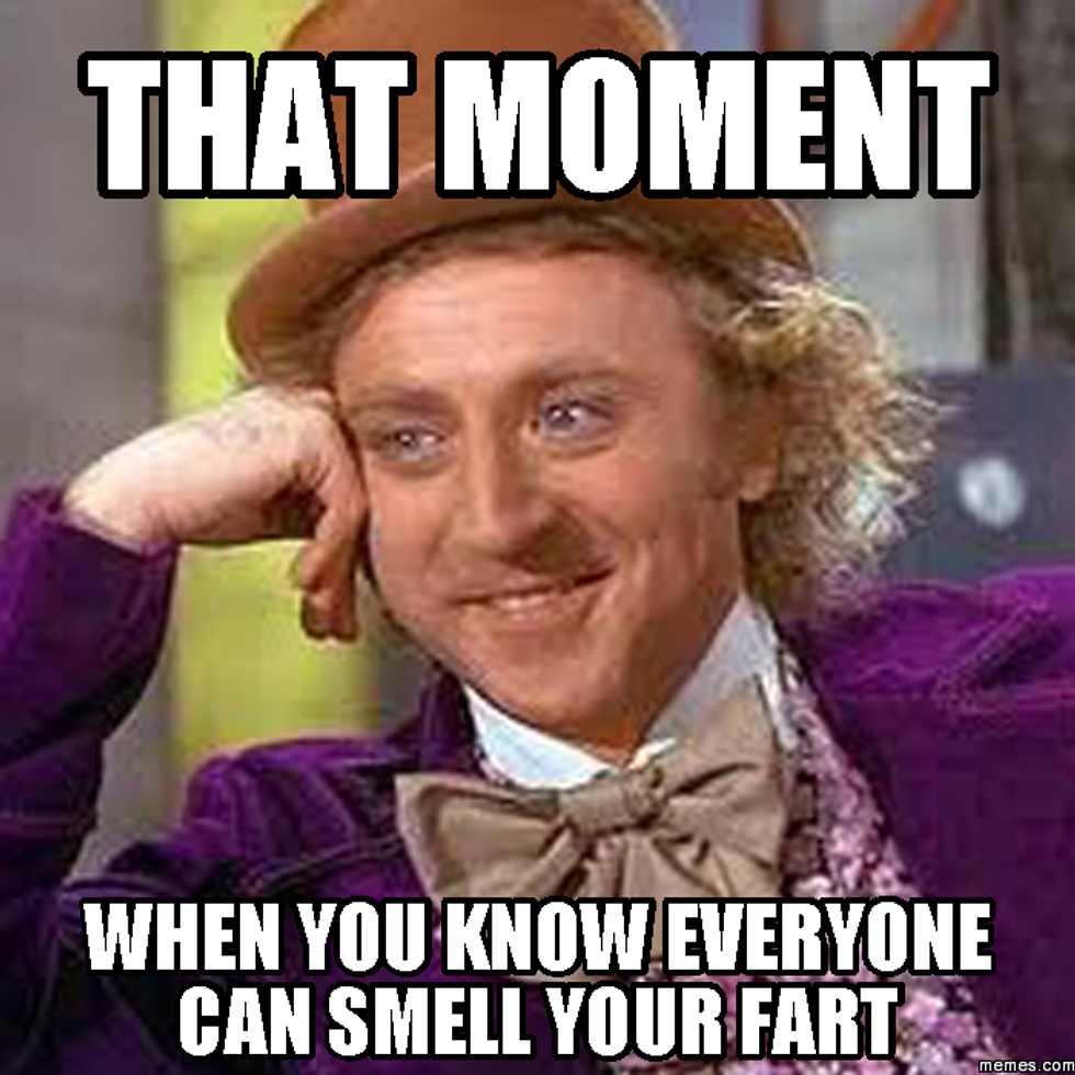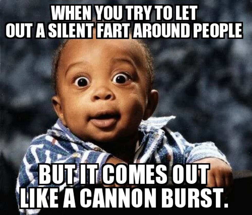 A fart can sneak up on you too, boom all of a sudden it happens and it could be any sort of sound, any sort of smell, at any time.