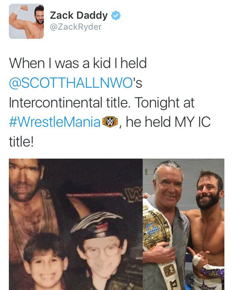 It was announced that Kevin Owens would defend his Intercontinental Championship in a Ladder Match against 5 other competitors: The Miz, Stardust, Sin Cara, Zack Ryder, and Sami Zayn. This was an action packed match that ultimately set the tone for the rest of the show. The match itself was phenomenal with everyone having time to shine. It was a truly amazing feeling to watch Zack Ryder, the ultimate underdog, climb the ladder and realize a dream. He even got Razor Ramon (Scott Hall) to take a picture with him after the fact, bringing full circle a childhood and the realization of a childhood dream.