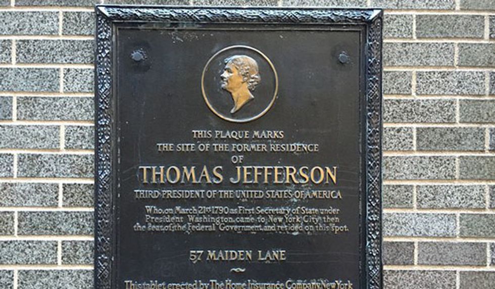 So what if you can't be in the room where Hamilton's being performed? Just go to the room where it happened instead. 57 Maiden Lane in Manhattan is where Thomas Jefferson temporarily stayed as Secretary of State. It's also where the compromise of 1790 occurred, a formal dinner between Jefferson, Hamilton, and Madison. Hamilton got the banks and Jefferson got the capitol location. While you can't necessarily go inside the building, there is a plaque commemorating the site.