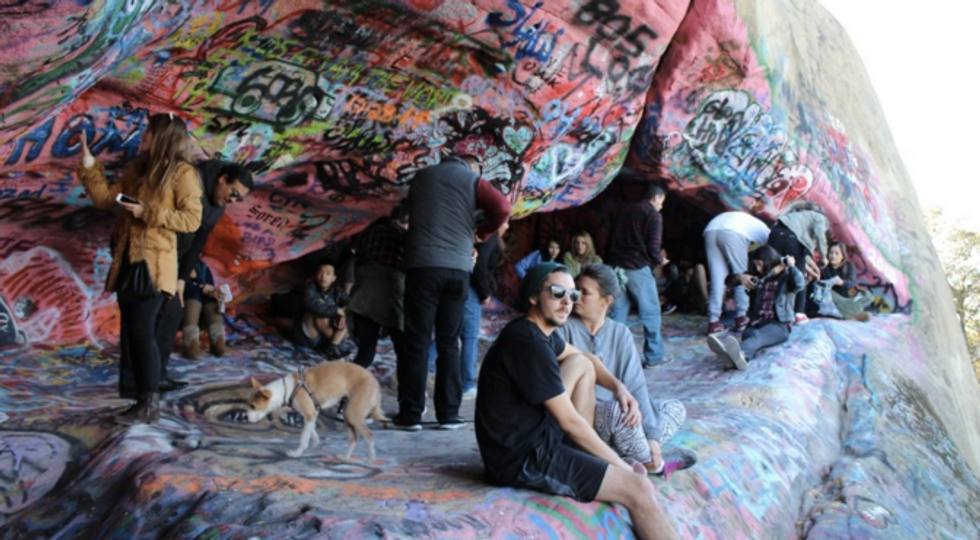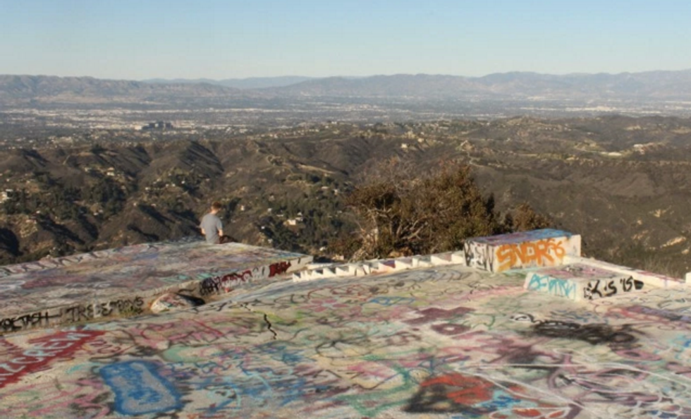 Explore abandoned Topanga Lookout in the Santa Monica Mountains, above Red Rock Canyon Park. This spot has some killer views of DTLA and the Pacific Ocean. Graffiti artists looking to make their own touch have come here to stray paint on the huge concrete blocks that sit on top of the peak.