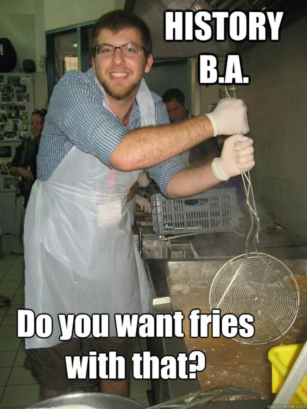 Of course, being on the BS history track (teaching certification) is means to an end, but graduating with a BA is really ambiguous. The common misconception is that there is nothing you can do with a BA, except for maybe McDonald's or Taco Bell. But, have people ever heard of archivists? paralegals? research assistants? curators?