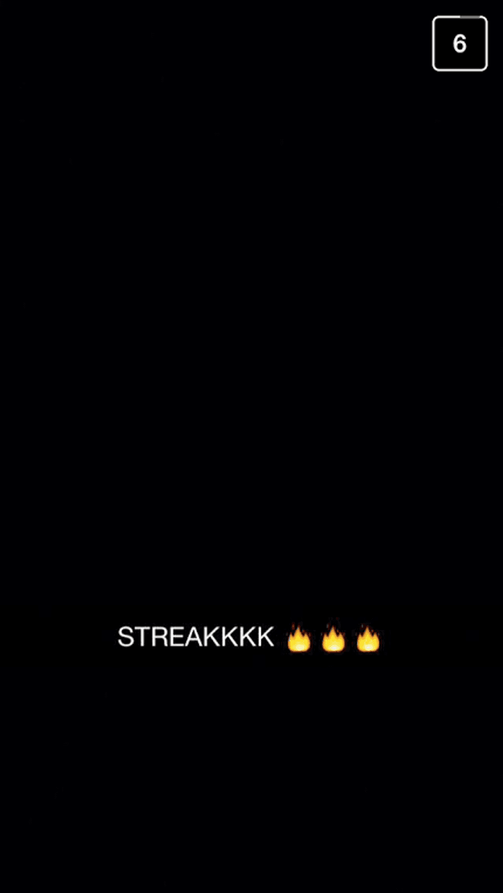 This Snapchatter highly values their snapchat streaks, which is the number that lets you know how many days you and your friend have consecutively snapped in a row, and will do everything in their power to maintain them. Nothing is more annoying to a streak keeper than somebody that could not care less about snapchat streaks. In this situation, it is not uncommon for the streak keeper to send a snap of a black screen saying "streak" to encourage the other person to respond in order to keep the streak. Breaking a streak is a very heart-breaking moment for a steak keeper and he or she may require some time to get used to not seeing the fire emoji next to their best friend's name anymore.