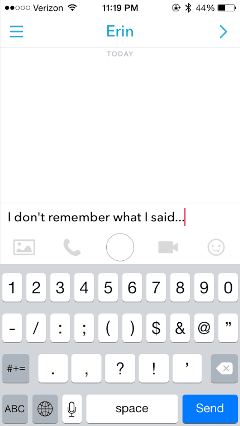 The texter is a huge fan of the messaging feature on Snapchat and does not care that the entire conversation will be deleted as soon as he presses send. There is nothing worse than forgetting what you said when sending a Snapchat message because what you said is gone forever. The texter may have become this kind of Snapchatter because he or she is too lazy to keep switching from Snapchat to their messaging app, which is completely understandable. Pushing the home button can get pretty strenuous from time to time.