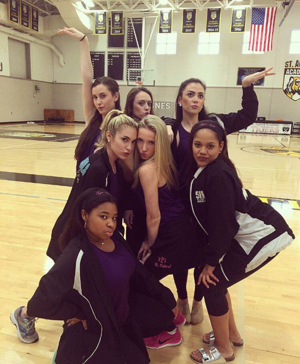 Two things our dance team looked forward to on Fridays: Friday night football and the process of getting ready for those games. The second that school bell rang to dismiss classes on Fridays, we’d all sprint to the locker rooms, makeup bags in hand, ready to fight for a spot in front of the mirror. Once everyone claimed their territory, flat irons were plugged in, girls whipped out their makeup brushes, and one lucky person would become the D.J. for the night. Having the aux chord was serious business…three strikes and you were on probation from aux chord privileges (cough cough, Rachel). Anyone that hasn’t experienced a Tiger Girls locker room before a football game may not understand, but basically it’s a two-hour process of alternating between dancing, putting on makeup, straightening hair, and more dancing. Or attempting to do all at the same time, in Van’s case. You know your locker room is lit when you sweat more from cheering on Van and Kendall when they’re freestyling than you do during the actual game. Dressed in our performance bras and tights, twerking to Tinashe, somehow these moments in the locker room brought us all together. I don’t know how we did it, but somehow we would always manage to be ready for dinner with full game-day-ready hair and makeup, ready to put on our boots and take the field.
