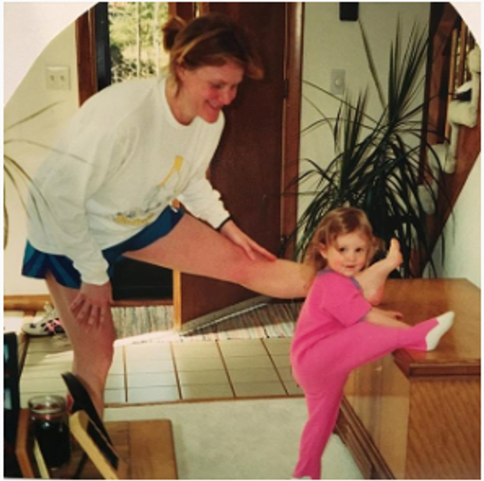 Stretching after one of her runs. Even when I was two years old, I wanted to be like her.