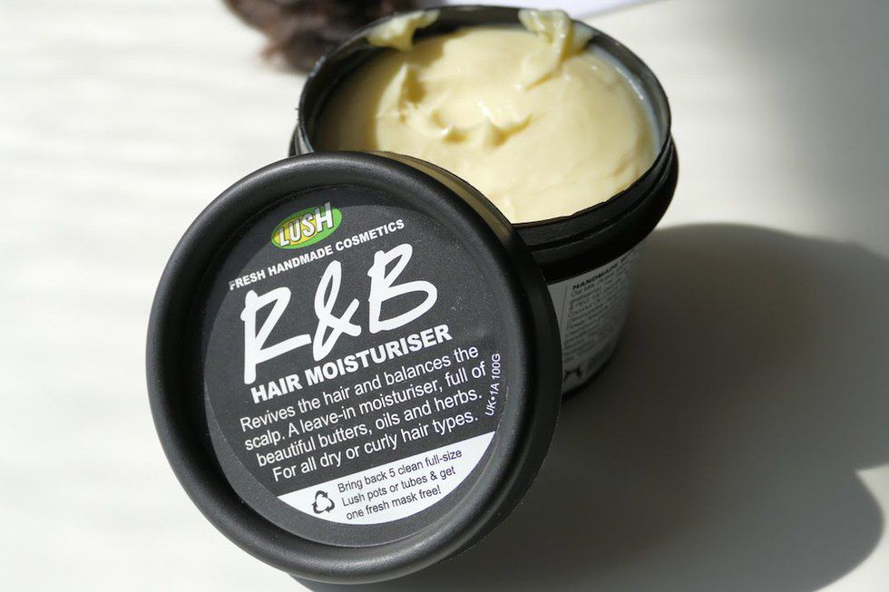 All you curly headed girls out there, this one's for you. It took me years of experimenting to find a leave in moisturizer that I was happy with. One that didn't weigh my curls down, make them crunchy, and didn't leave my hair feeling greasy. I'm often complimented on my natural hair, and I'm usually asked what type of curler I use. I'm happy to tell them that it's Lush's R&B Hair Moisturiser that actually accentuates my natural curls and waves: no heat necessary! The organic avocado butter, extra virgin coconut oil, jojoba oil, olive oil and candelilla wax not only make this an awesome product for my hair, but it works awesome for all hair textures, including African American hair or tight curls. Not to mention it smells phenomenal with the hints of, yup, you guessed it, jasmine and orange extract once again. Use a small nickel size dollop and start by working it into the ends and upwards.