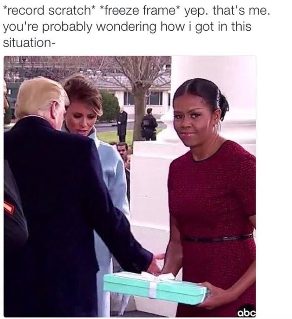Memes can act as catalysts for political and controversial conversations while creating a platform to deal with troubling uncertain times through laughter and comedy in a way that everyone can relate to. In this example, the Michelle Obama meme recounts the shock that many millennials (and Americans in general) felt in regards to the presidency.