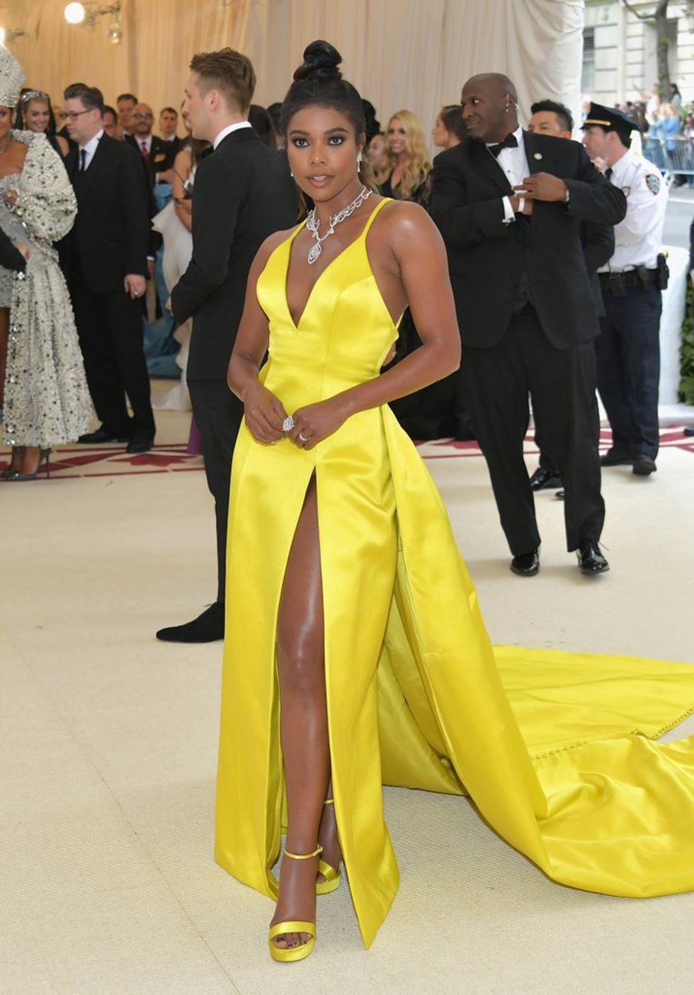 Gabrielle Union's gown depicted a bold hue of yellow. Like many other Met Gala attendees, Union's gown included a long flowing train.