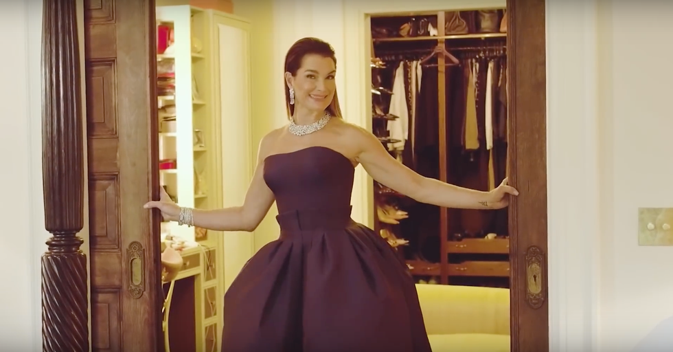 The legendary model and actress wore a lovely navy gown with beautiful Tiffany jewels.