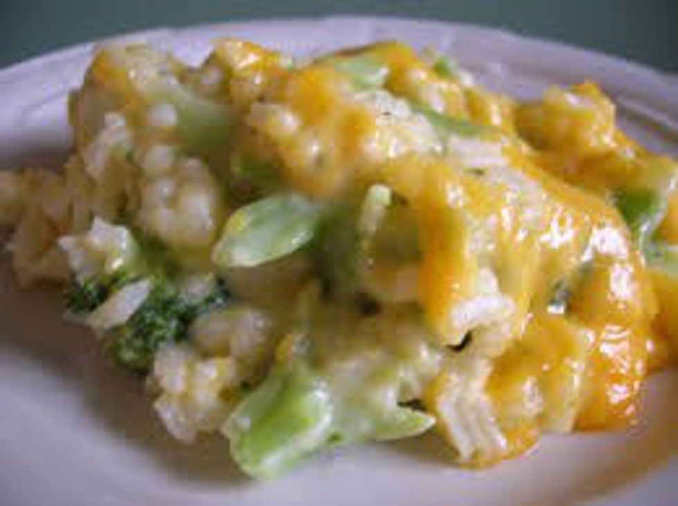 The ingredients needed for this casserole are one serving size of Minute Ready-to-Serve Rice, two tablespoons of shredded cheese, four to five frozen broccoli florets, and one tablespoon of water. Prepare the rice as instructed on the package. After rice is done cooking, add broccoli, cheese and water into a bowl and microwave for two minutes. Next, remove from microwave and smash broccoli with a fork. Lastly, pour in the rice and mix together.