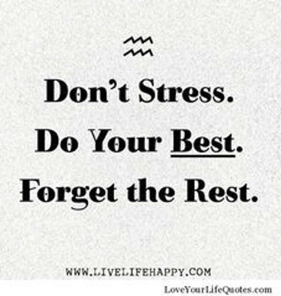 Life can be stressful sometimes. If you're putting your best foot forward and looking at the positives, everything will work out.