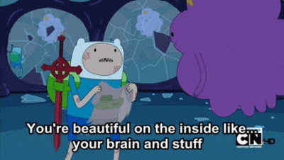 The quote to this image is "Please! I need the real you!" This one goes hand in hand with the Finn quote regarding beauty. Sometimes we even become insecure about or brains (personalities and ideologies) so we pretend to be someone we are not. But at the end of the day there is only one you. One person who has lived you exact life become the unique individual you are, so why try to be someone else? If anything we should try to be the best versions of ourselves, not someone else. The people who truly appreciate you, will appreciate the real you. In fact, the real you is probably the version they like the most, and if they don't it is okay to move on from people.