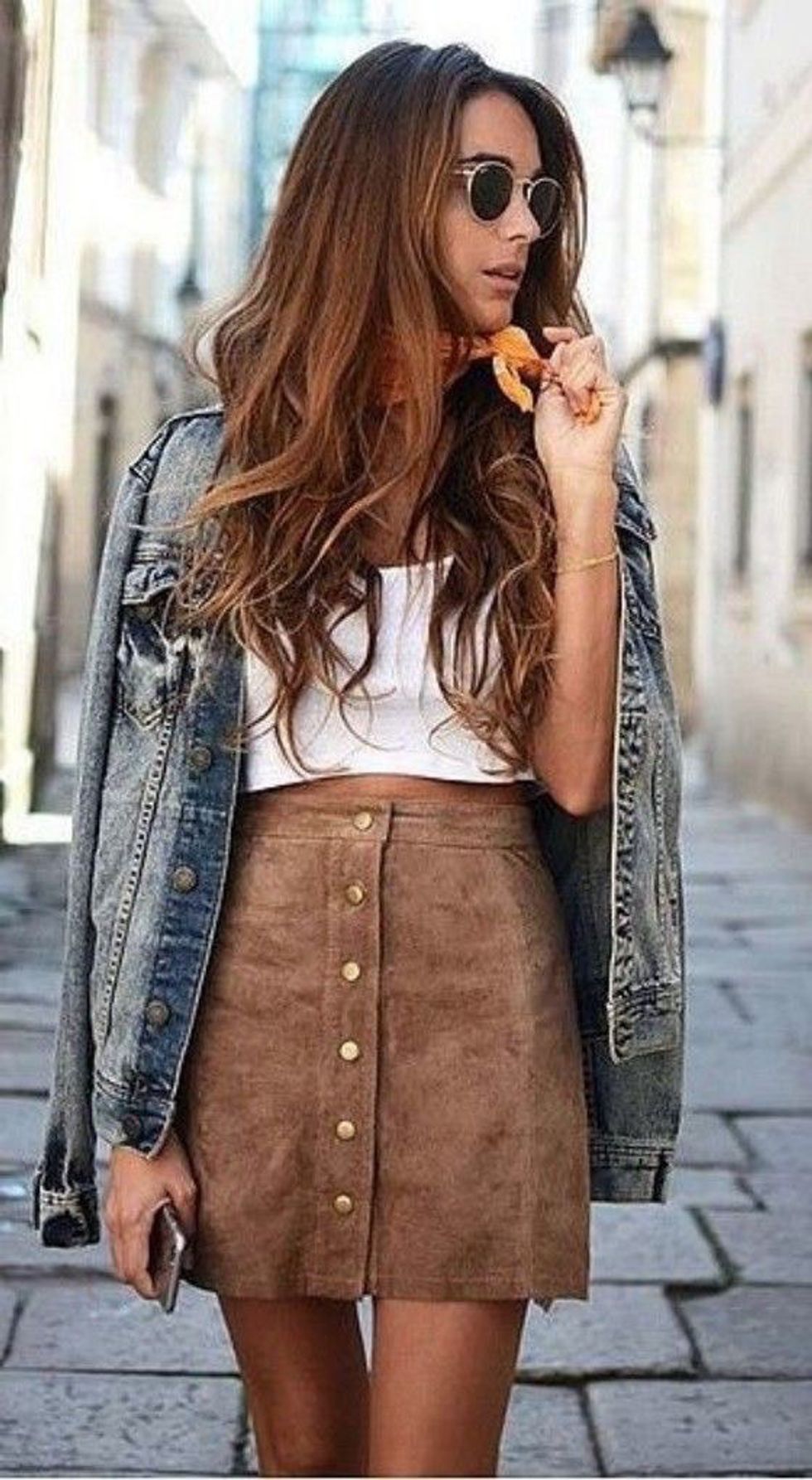 My personal favorite style of this skirt is the faux suede in tan. It goes amazing with a white crop top and a pair of wrap around sandals. A button down skirt like the one pictured can be found at Macy’s and PacSun, but different materials of the skirt can be found at Urban Outfitters, Target, and Forever 21.