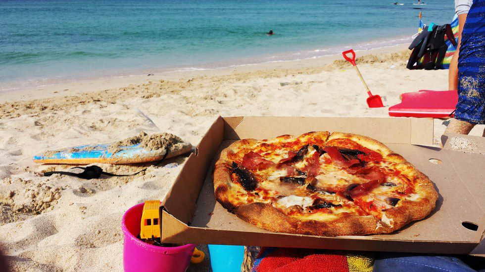 7. Long days on the beach that lead to "beach happy hour." The best kind of summer day is when you are on the beach so long that you decide to order pizza and have it delivered along with some drinks, so you and your friends and family can stay and watch the sunset.