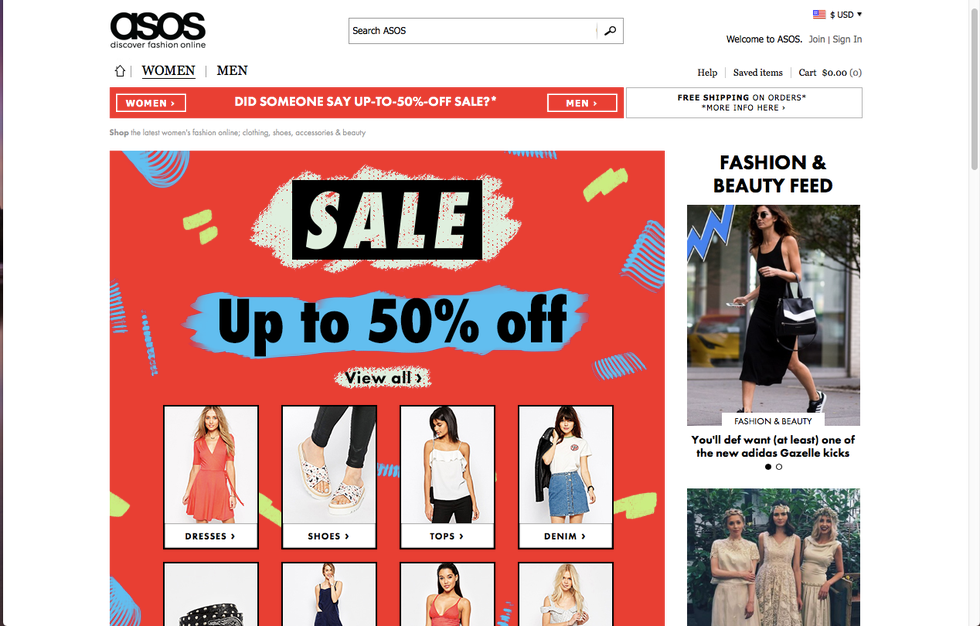 Asos.com is a very trendy apparel online store that sells clothes for both men and women for affordable prices. Plus, they are college student friendly, offering a 10% off your purchase for just being a student!
