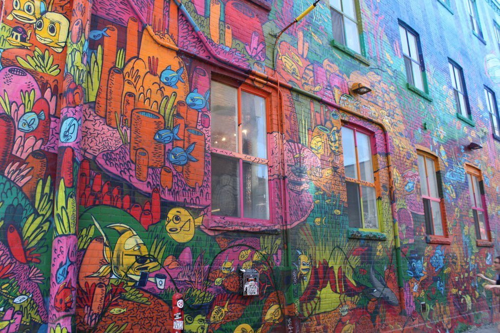 Located in the Fashion District of downtown Toronto, Graffiti Alley runs down several blocks, from Spadina Avenue to Portland Street. It is a common tourist attraction featuring vibrant and colorful street art painted by some local Torontonians as well as many European graffiti artists!