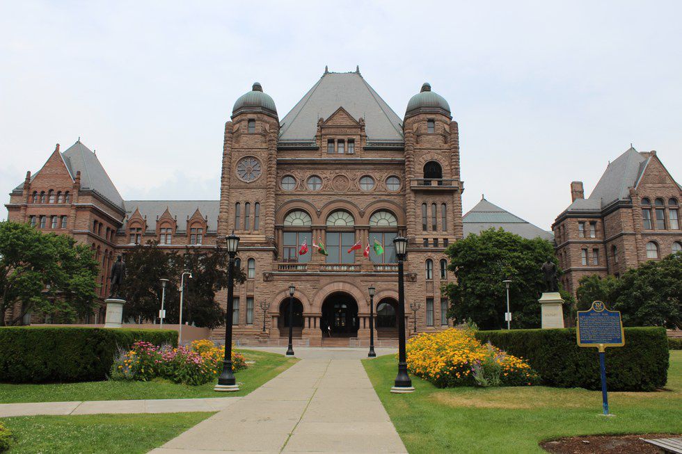 Queen's Park, established in 1893, has a number of gardens and footpaths surrounding the main building, the Ontario Legislative Building (displayed in the image above.) This building is inspired by Romanesque architecture and serves as the home for the current lieutenant governor, Elizabeth Dowdeswell.
