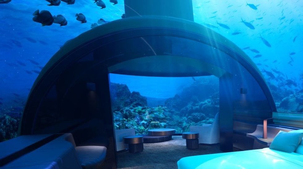 If you happened to glance at this building during a walk along the beach, you wouldn't be impressed. Above the sea-line, it looks like it is nothing more than a simple pier. However, under the water, a dreamlike apartment is present. The room is incredibly modern-looking, with a minimalistic aesthetic and a beautiful underwater view of the sea that can take anyone's breath away.