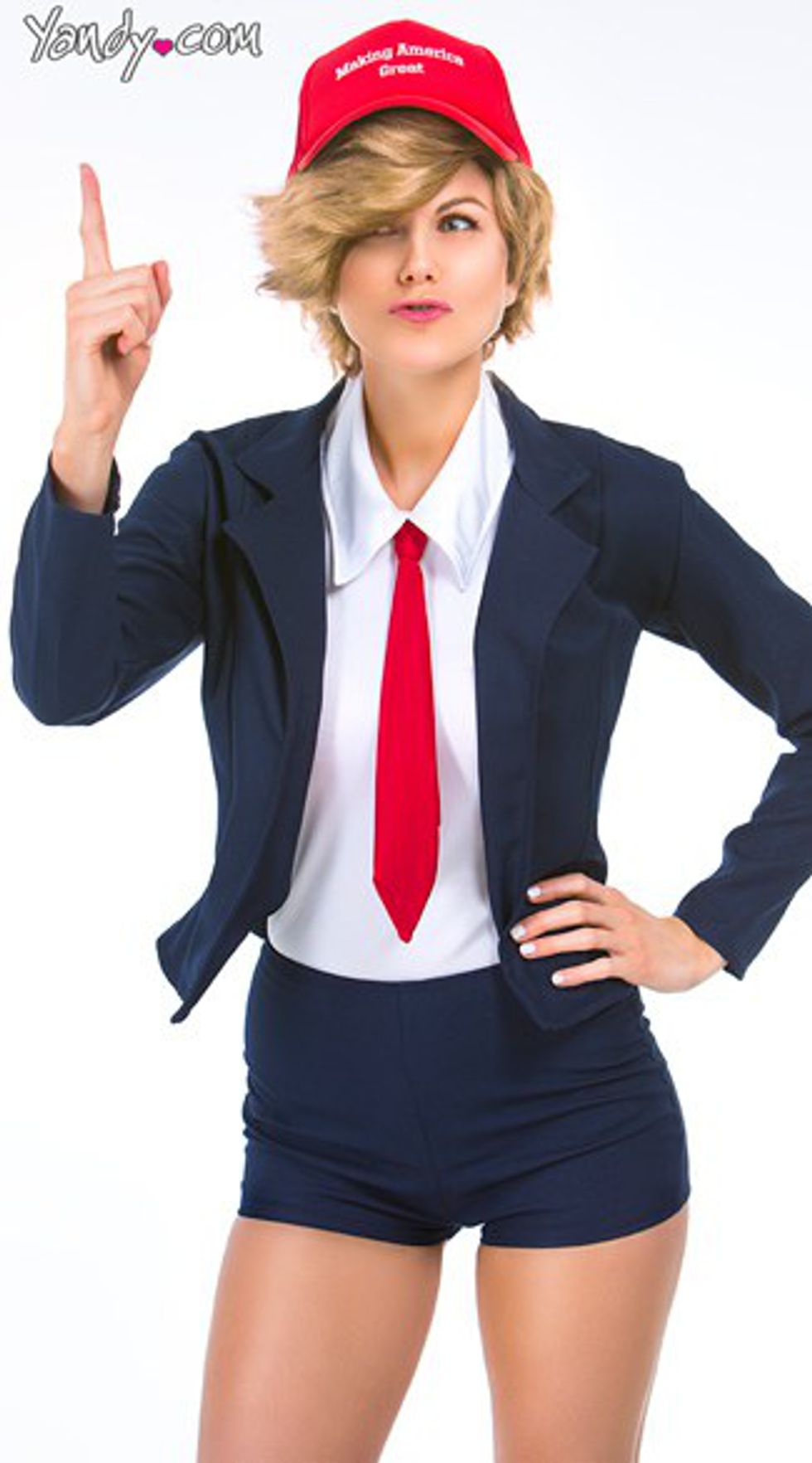 So many thoughts. The description explains that you'll be "Making America Great!" this Halloween. What's next, slutty Abraham Lincoln?