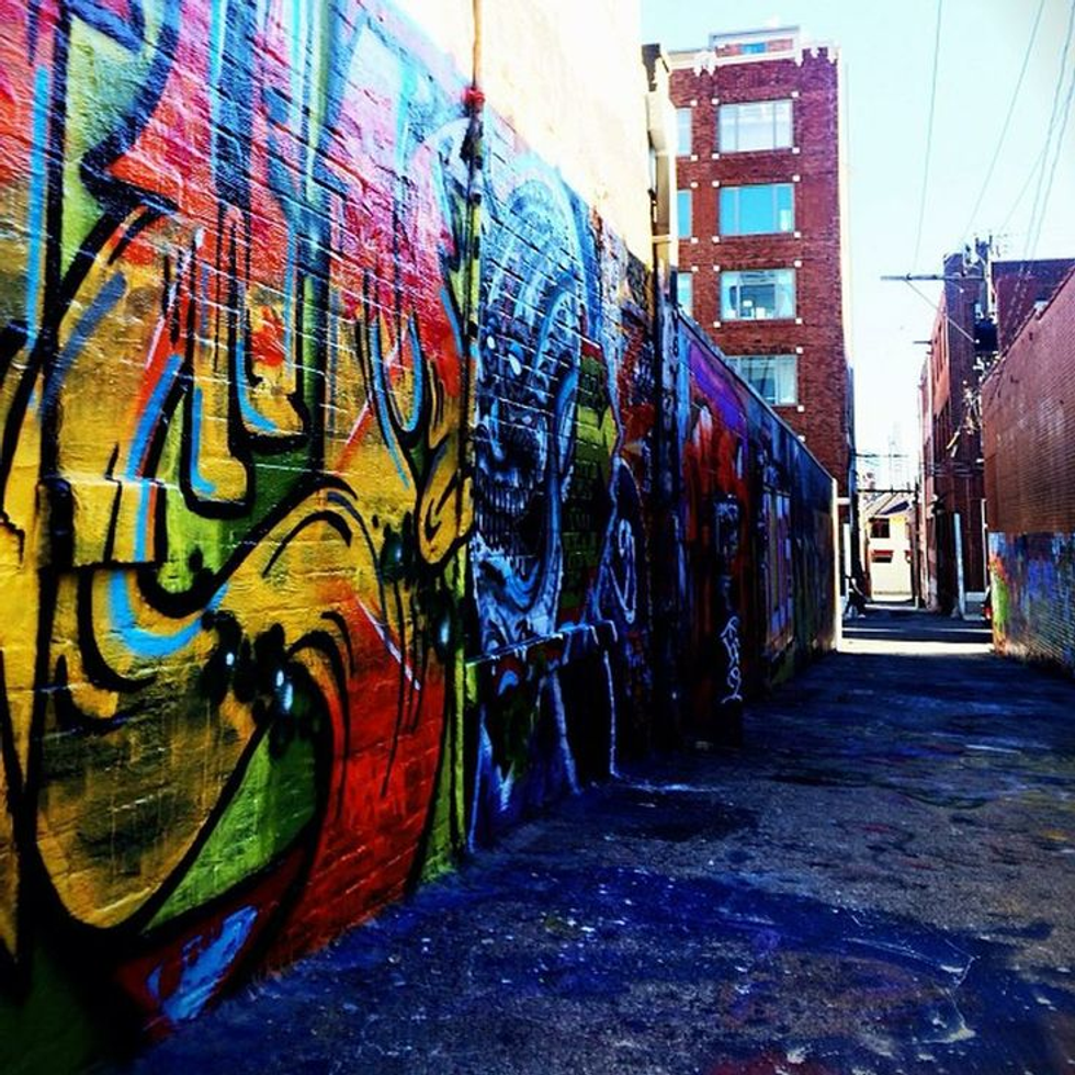 Art is everywhere in the Crossroads, including the walls, telephone poles, and sidewalks.