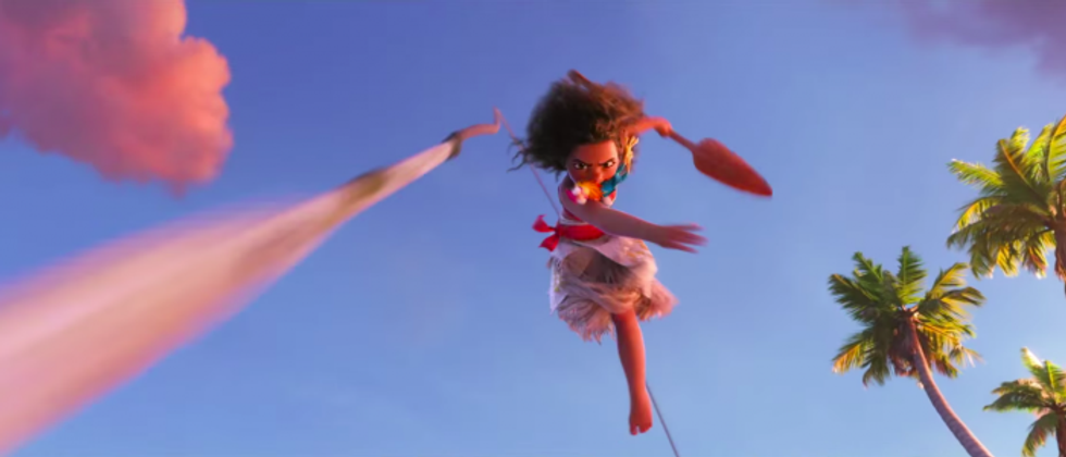 What makes Moana my new favorite princess is the fact that she is a total badass. Maui refuses to help her? No problem, she's more than capable of doing it herself. Maui traps her in a cave? She uses her intelligence and strength to find her own way out. The scary little coconuts steal the Heart of Te Fiti? She leaps onto their ship, beats them away with an oar, and throws a spear with rope at her boat so she can zip-line to safety. She does all this because she loves her family, her people, and the ocean, never letting what seem to be impossible obstacles prevent her from fighting for what really matters. Moana has changed the very image of a princess, transforming that identity from a damsel-in-distress into a powerful warrior.