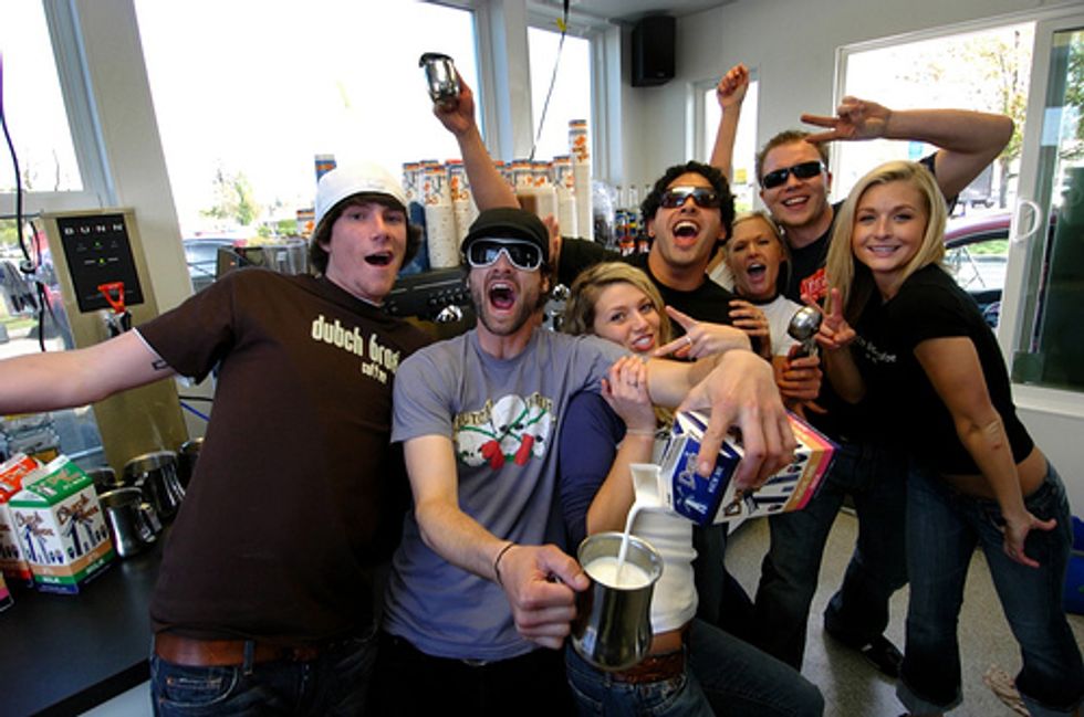 As soon as you pull up to Dutch Bros, whether you go through the drive-thru or park, you are always greeted by a worker who actually seems to want to converse with you. It is not just a "Hi. Welcome to Starbucks." It is actually "Hey! What's up? What are your plans for the day? Nice shirt!" To me, that just makes me feel like they love their job (whether the attitude is fake or not) and that makes me more comfortable. To top it off, the Dutch Bros playlist on Spotify is totally lit.